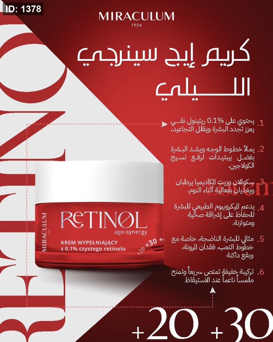 يُوضع مساءً على بشرة نظيفة وجافة للوجه والرقبة ومنطقة أعلى الصدر. بعد أن تعتادي على الكريم بتركيز ريتينول منخفض، يُنصح باستخدامه مرتين إلى ثلاث مرات أسبوعيًا، مع زيادة الجرعة تدريجيًا حتى الاستخدام اليومي.مع ضرورة وضع واقي شمس صباحاً. ونظرًا لاحتوائه على الريتينول، يُنصح بعدم استخدامه أثناء الحمل أو الرضاعة.