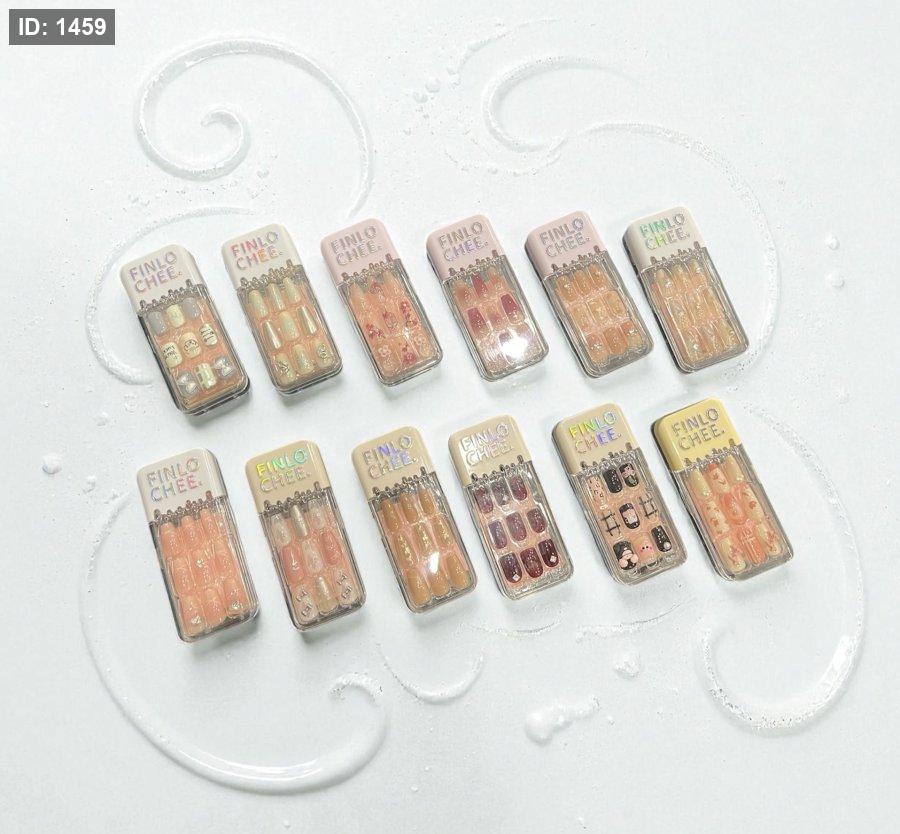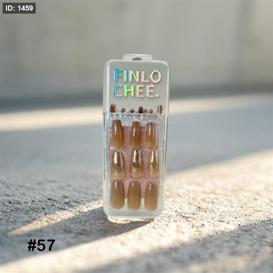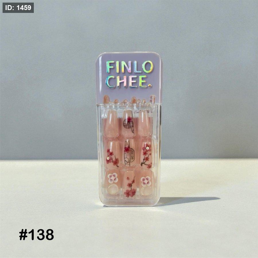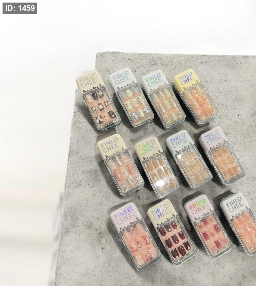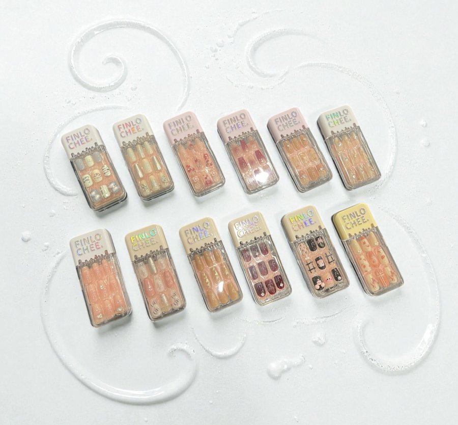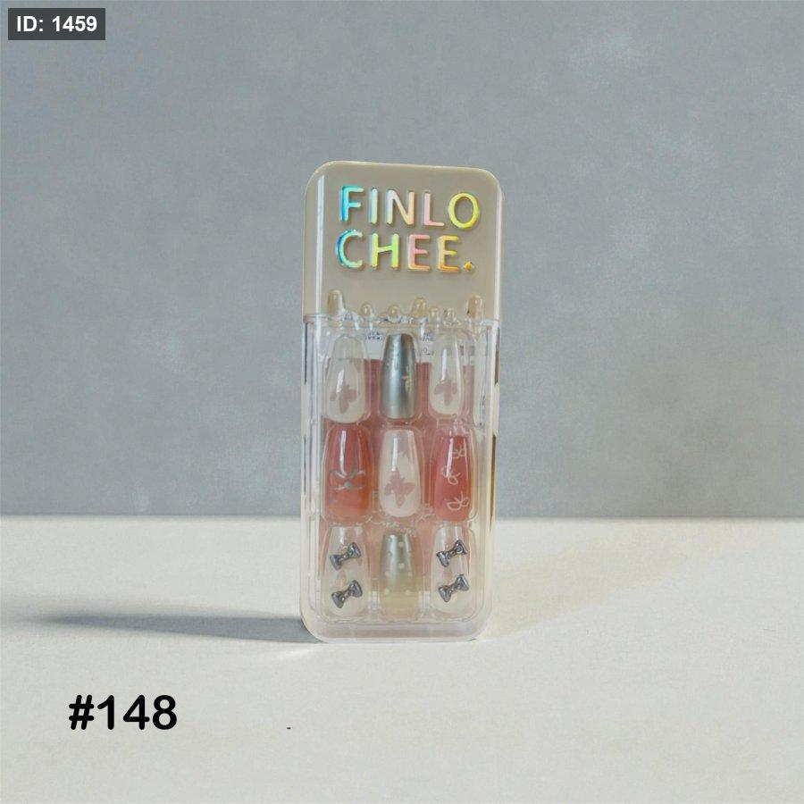 أظافر صناعية من FINLO CHEE هي مجموعة أظافر بالضغط تتميز بتصميم فرنسي عصري، مع قاعدة بلون وردي فاتح أو عاجي وأطراف بيضاء، مزينة بلمسات من الجليتر وأحجار الراين الزرقاء الصغيرة. يتم بيعها غالبًا في عبوات تحتوي على 30 قطعة.