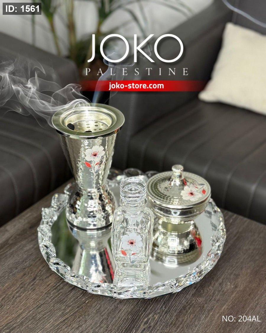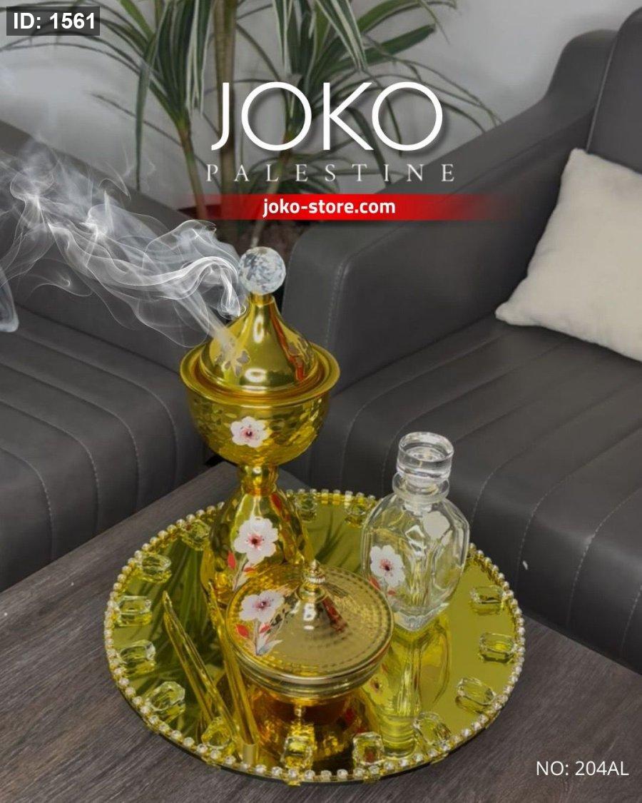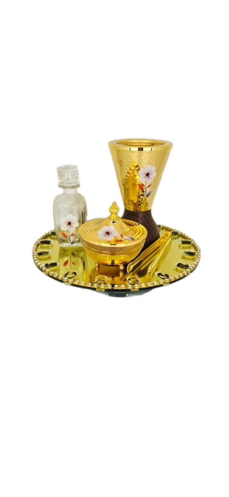 🔹 إطار مجدول مزين بكريستال لامع للمبخره الفضيه وحبات من الكريستال المميزه مع استراس أنيق على اطار المبخره الذهبيه