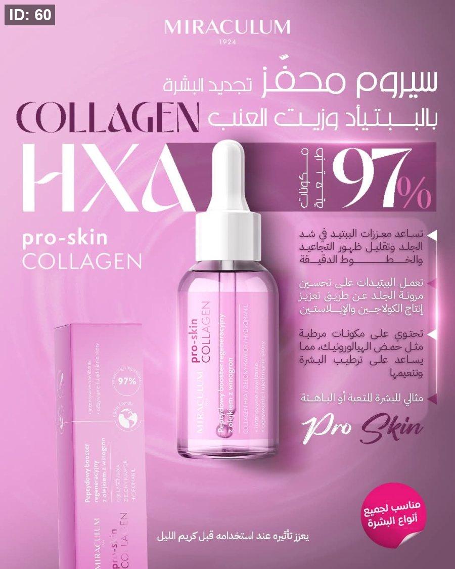 ميراكولوم كولاجين برو-سكين معزز تجديد الببتيد بزيت العنبk تركيبة هذا المركب النشطة بيولوجيًا تحفز إنتاج الكولاجين داخل الخلايا، مما يُجدد البشرة بشكل ملحوظ ويُحسّن حالتها.