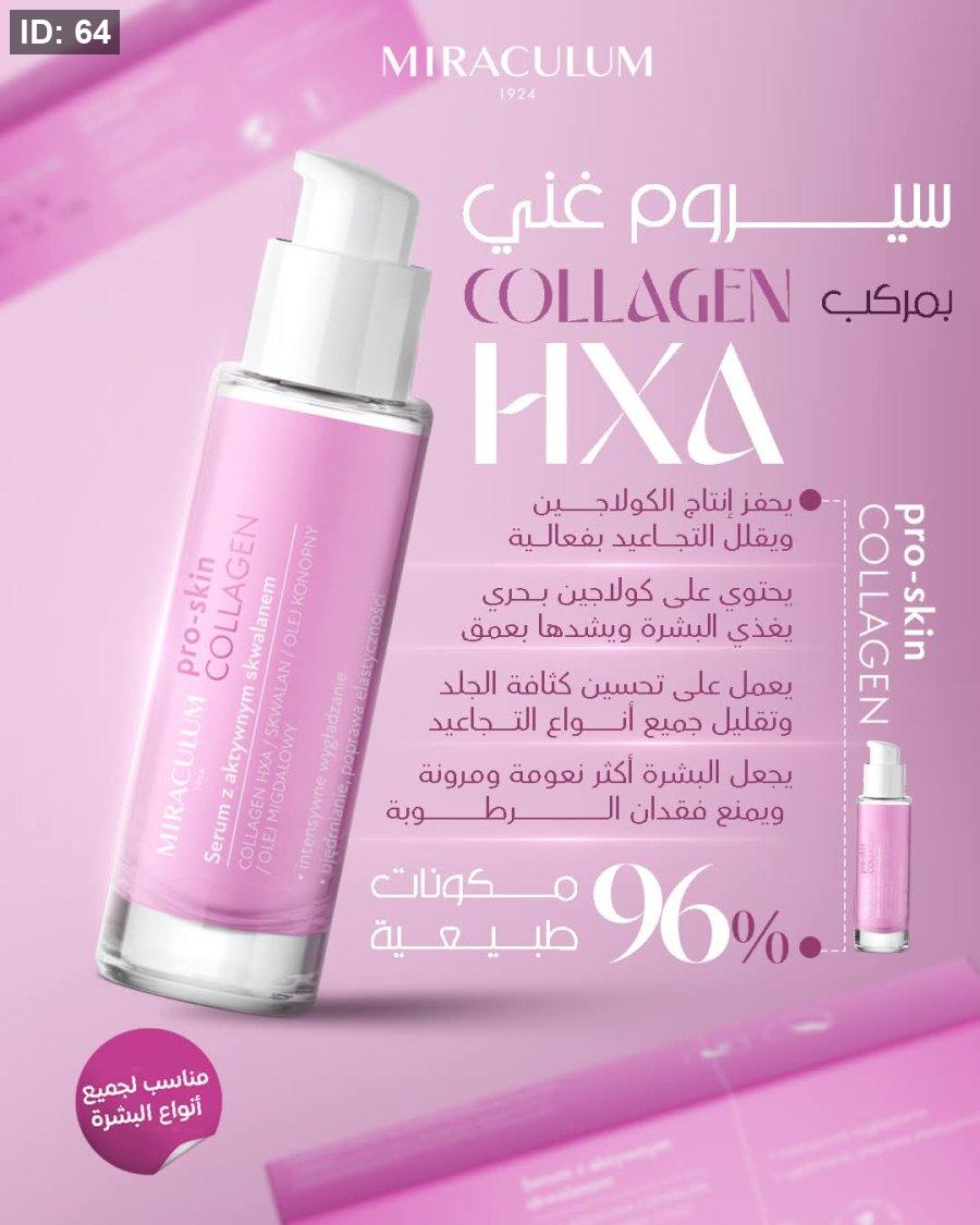 ميراكولوم كولاجين برو سكين / مصل مع السكوالان النشط، تركيبة هذا المركب النشطة بيولوجيًا تحفز إنتاج الكولاجين داخل الخلايا، مما يُجدد البشرة بشكل ملحوظ ويُحسّن حالتها.