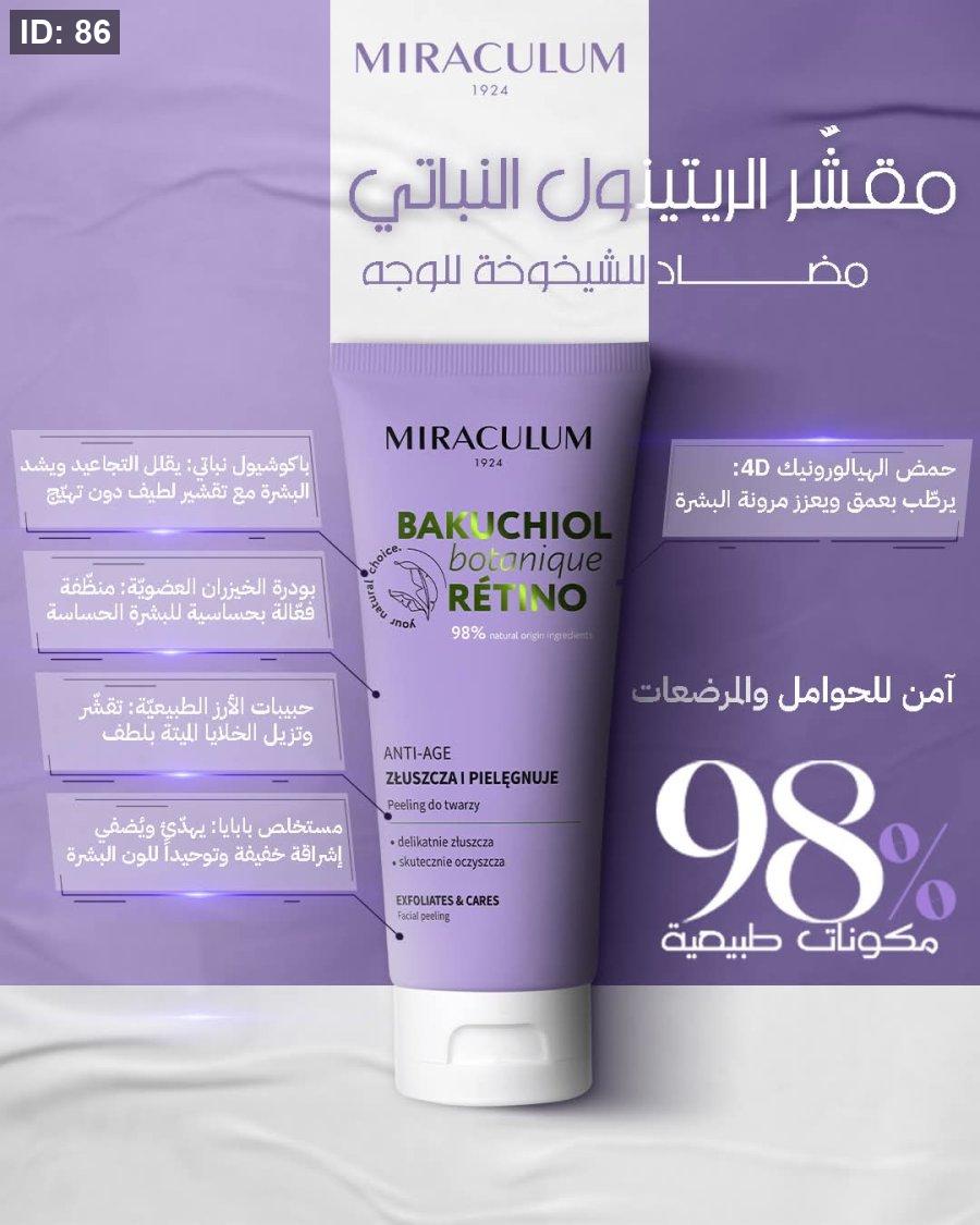 ميراكولوم باكوتشيول تقشير الوجه المضاد للشيخوخ سلسلة باكوتشيول بوتانيك ريتينول هي خط مبتكر لمكافحة التجاعيد، يعتمد على 98% من المكونات الفعالة من مصادر طبيعية. باكوتشيول ، المعروف أيضًا باسم الريتينول النباتي، هو مكون طبيعي 100% ومتعدد الوظائف، يقلل التجاعيد، ويعزز تماسك البشرة، ويبطئ عملية الشيخوخة