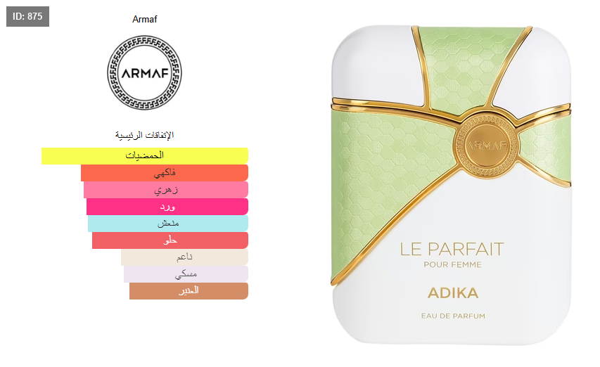 عطر "أديكا" النسائي الرائع من أرماف هو زهرة رقيقة من الهدوء والسكينة، منعشة، وأنثوية بكل بساطة. بنفحاتها التي تلامس نور الصباح، وبتلاتها التي لا تزال تلامس الندى، تشعّ نضارة خضراء ناعمة ملفوفة بعبير الأزهار الرقيقة. برشاقته وإشراقته الهادئة، يترك وراءه أثرًا طبيعيًا كالأنفاس، جميلًا كالسكون. عطر "أديكا" للمرأة التي تتحرك كالطبيعة، هادئة، مشرقة، ومنسجمة تمامًا مع محيطها. إنه العطر الذي يعيدكِ إلى ذاتكِ، خفيفة، نقية، ورشيقة بلا حدود.